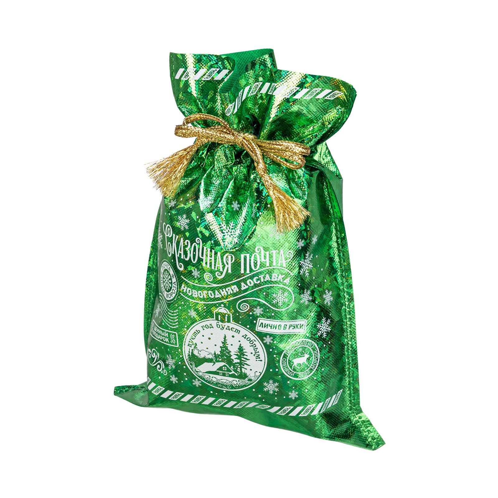 Интересный вариант новогоднего подарка – «Мешок Сказочная почта». Отлично подойдет на подарок в 2026 году с символом Лошадь. Внутри такого презента находится кондитерский набор весом 500 граммов.